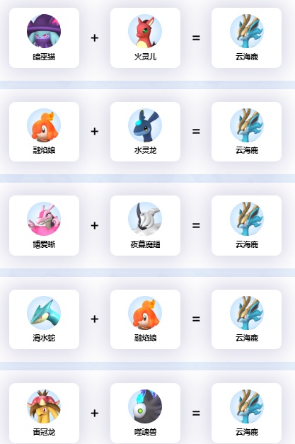 5、雷冠龙+焰巫狐=云海鹿