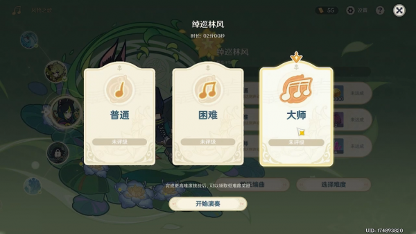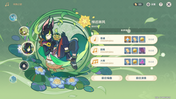 风物之歌完成更高难度的挑战,可直接获得较低难度模式的奖励。
