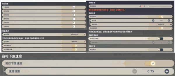 开始挑战前可以校准一下延迟以及调整下音符下落速度