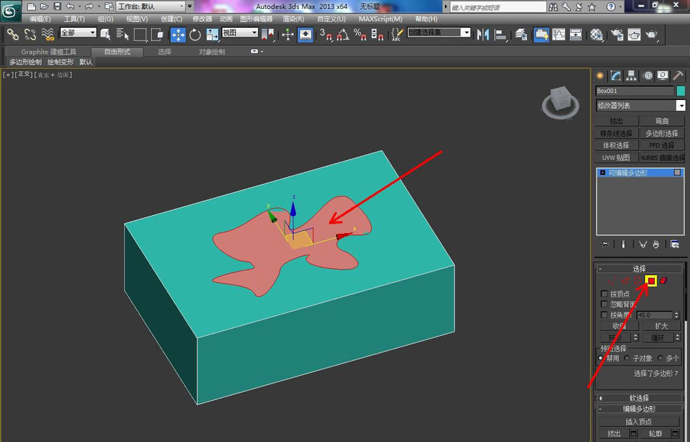 点击右边工作区中的多边形图标后,点击选中要添加贴图的模型面