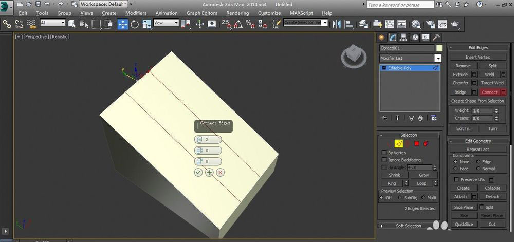 加好点后再次选择需要连接线的边,在可编辑多边形修改面板中选择创建就可以完成点与点之间的连线。如下: