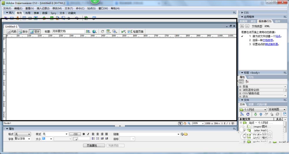 3、这时显示空白HTML文件工作编辑区。