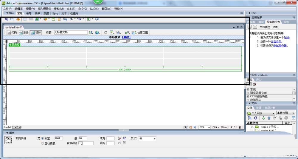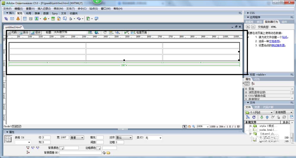 标准模式是最常使用的编辑模式,也是最接近实际效果的模式,在Dreamweaver CS3中,用鼠标在表格内单击或者调整单元格列宽时,会发现随时出现的宽度提示,告诉读者有关表格宽度的信息。