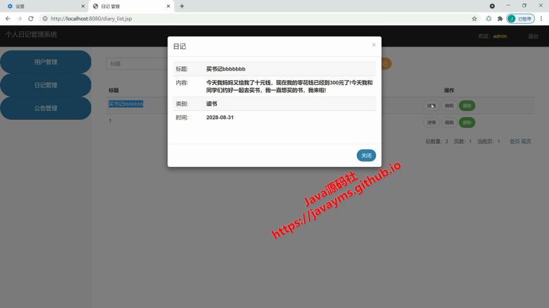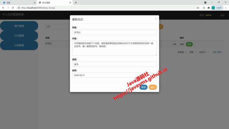 基于javaweb+jsp实现个人日记管理系统