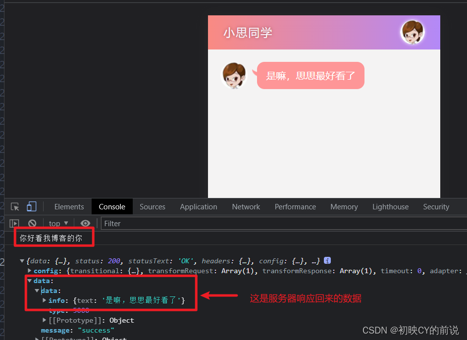 这是服务器响应数据返回的值所在的位置(res.data.data.info.text)