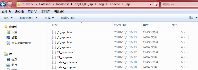 当我们通过浏览器(http://lo*c*alh*ost:8080/day11_01_jsp(项目名称)/C1.jsp)访问C1.jsp时,服务器首先将C1.jsp翻译成一个C1_jsp.class,在Tomcat服务器的workCatalinalocalhost项目名orgapachejsp目录下可以看到C1_jsp.class的源代码。(1.jsp翻译成_1_jsp.class)