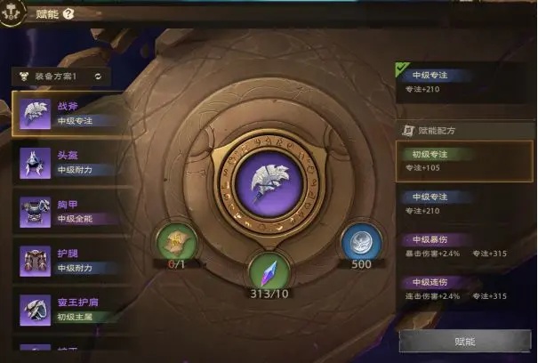 头盔、胸甲、护腿赋能选择耐力、连击赋能
