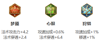 解析:狩猎提升10%移速加成,对于被动具有加速效果的小乔来说,适合放风筝,可以进行中远距离的输出,机动性高。心眼和梦魇提升法穿效果。对于小乔这种伤害比较高的英雄来说,增加法穿可以在对方出法抗时也打出高额伤害。