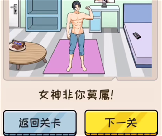 6、减肥成功后,打开衣柜,找到衣服给肥宅穿上,逆袭成功,顺利通关。