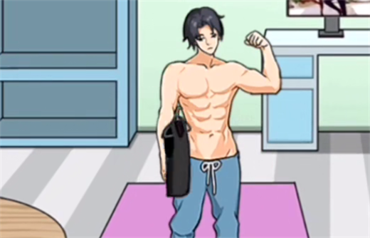 1、点将墙上的动漫贴纸移动到肥宅身上,刺激肥宅进行运动。