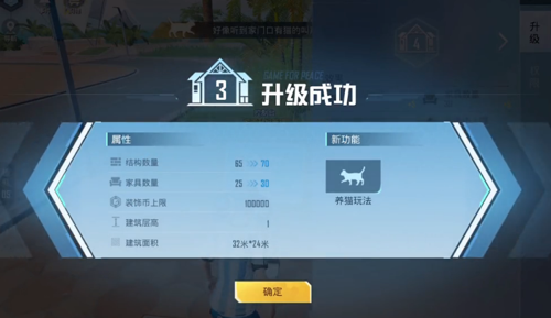 养猫的先决条件:首先你要将你的家园升级到3级才可以开启养猫的操作