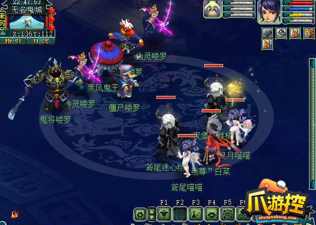灵山接引僧(大唐境外16,106)那里领取剧情任务,这里以考验品格为由,因为测试号是人族,要求从黑风鬼王那里抢回被盗的妙法莲华经,来到无名鬼城找到黑风鬼王,鬼王会移动所以坐标不固定,不过好几次都是在(无名鬼城134,116)找到的,可以给大家一个小小的参考。点鬼王直接切入战斗。战斗总体难度不高,需要要注意对面怪有感知,如果号比较脆皮,那么还是带上能拉血拉人的号比较好,或者带个救人药以备不时之需,战斗结束后获得427500经验以及妙法莲华经。