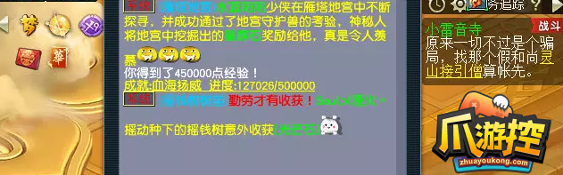 原来一切都是骗局,而且还困住了唐僧师徒,看来这事不能袖手旁观了,要定要好好教训那个假冒的和尚。找到灵山接引僧(大唐境外16,106),直接切入战斗,战斗难度不高,对面的怪有感知小怪随机门派,如果小号比较脆,还是得稍微注意一些,可组上辅助或者带好救人药。战斗结束获得450000经验。