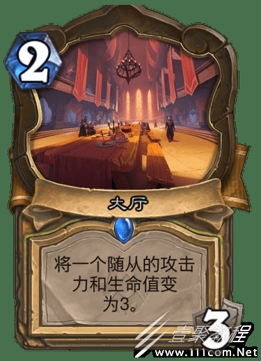 骑士的大厅是一张朴实无华的软解,打出以后,对手只要没有拆迁修理工,大哥随从要么就一直卡在手里,要么一出来就被变成3-3的小杂毛,直接被解掉。而且,你知道吗?它和冰封王座版本的黑暗裁决是一样的费用,一样的效果,但却可以免费多用两次,简直太离谱了!