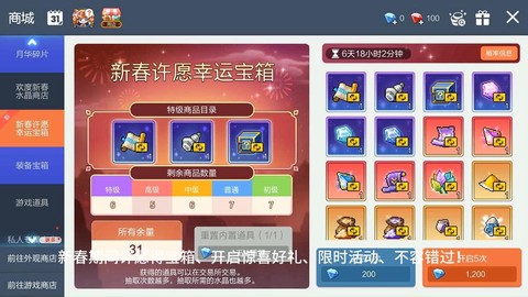 节日限定外观:彰显个性的绝佳时机对于注重颜值的玩家来说,新春鸿运宝箱简直是宝藏库。仅需12元就有机会开出原价四五百的永久套装,比如黑得公主套装、精灵之王套装等典藏外观。这类宝箱采用"开启即剔除已获得物品"的机制,意味着每次抽取都会提高后续获得心仪装扮的概率。建议先查看宝箱内包含的全部服饰清单,若有多件心仪单品,完全可以放手一搏——毕竟比起日常售价,春节折扣堪称"骨折价"。