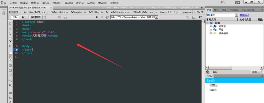 1、新建一个html文档,然后ctrl+s保存到站点