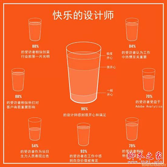 Adobe一份新的研究指出,创意人员在工作中感到很快乐。经过对 1000 名受访者的调查,Adobe 发现在满意度这个杯子里,美国的设计师、插画家和摄影师倒的水可是比一半还要多哦。