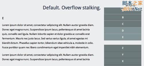 如下图,页面查看到E区域,右则导航的E就会高亮,像某手机上的联系人效果。