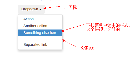 主要是添加了li role=presentation class=dropdown-headerDropdown header/li 里面有个.dropdown-header的样式类。