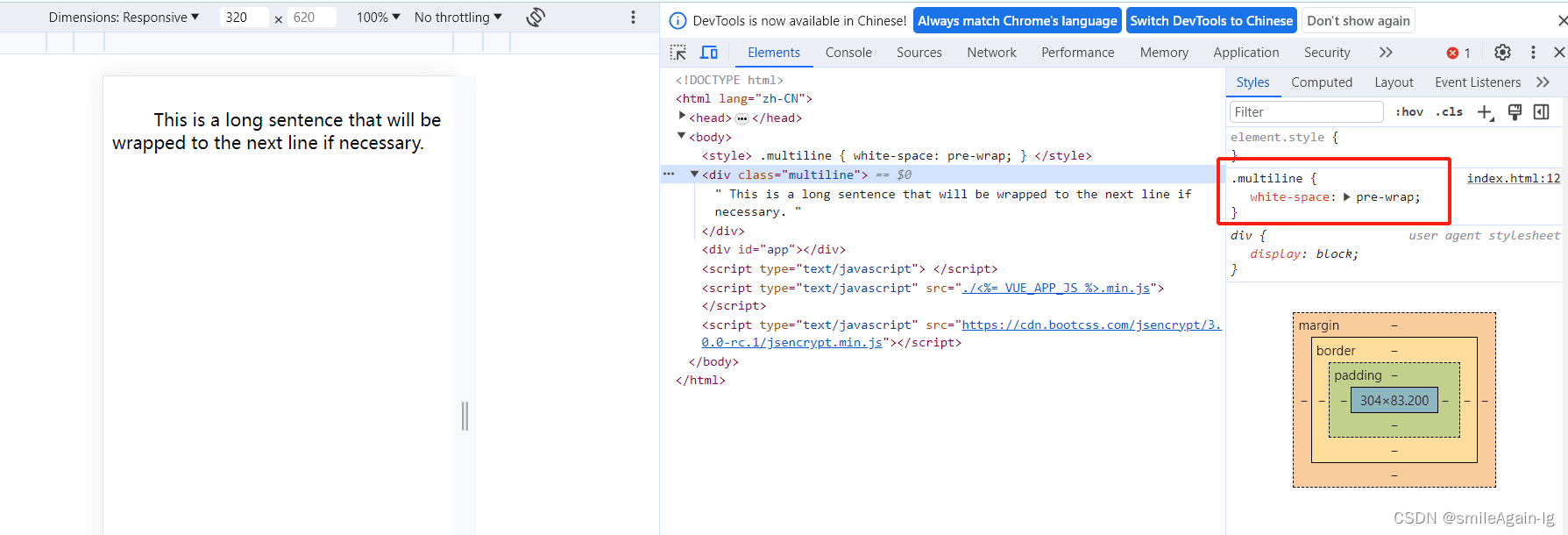 - pre-wrap:保留原始的空白符,文本在遇到边界时会自动换行。