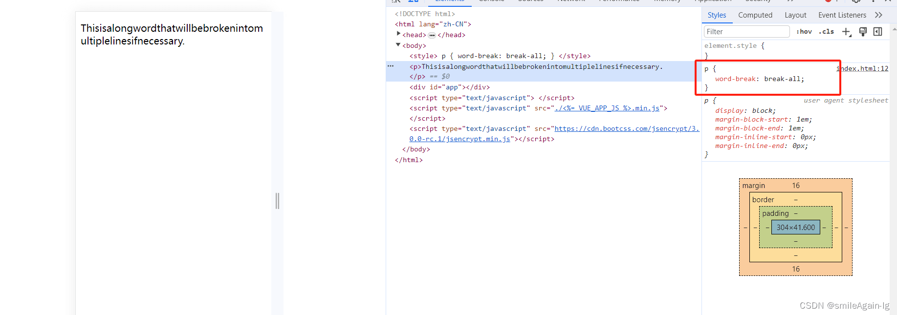 例如,将一个 p元素的 word-break 属性设置为 break-all 可以实现单词内部的换行:
