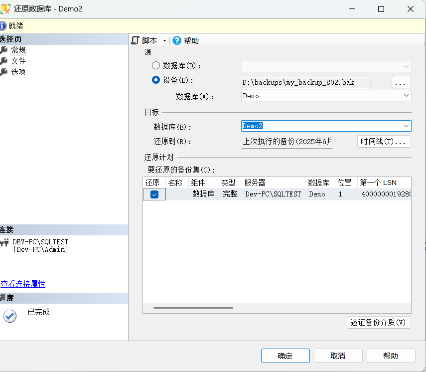 要验证备份是否真有效,可以把这个文件还原回 SQL Server,如果还原后,看到数据,说明备份是没有问题的。