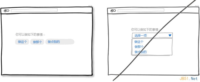 你使用的任何一个下拉框都会对用户造成信息的隐藏而需要额外的操作才能显示。如果这些信息是贯穿整个操作所必需的,那你最好把它展示出来做得更显而易见一点。下拉框最好用在选择日期,省份等约定俗成的地方。对于程序中重要的选项最好还是不要做成下拉形式。