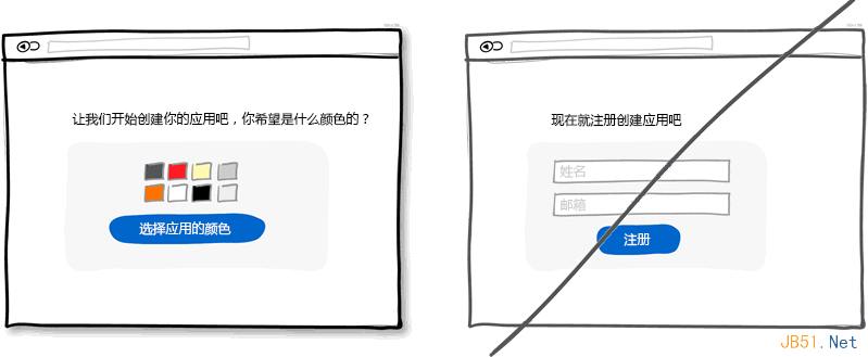 与其让用户马上注册,何不让用户先进行一些体验式的操作呢。这个体验过程可以展示程序的功能,特性等。一旦用户通过简单几步的操作了解了程序的价值所在,那么它会更愿意填写注册表单的。这种循序渐进的引导可以尽量推迟用户注册的时间但又可以让用户在没注册的情况下进行个性化设置等简单操作。