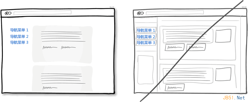 为了满足各式用户的需求,在页面上放些链接链到这里链到那里是常见的做法。如果你的主要目的是想让用户点击页面最后那个下载按扭什么的话,就需要三思了。因为用户可能点击了其他链接离开页面了。所以你需要注意页面的链接数量,最好将用于导航与用于操作的链接用样式区分开。尽量移除页面不需要的链接会让用户点击到你的功能按钮。