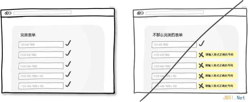 在处理表单时,最好立即检测出用户所填写内容是否符合要求然后给出验证消息。这样错误一出现能就能得到改正。相反,提交后再检查表单会给出错误消息,会让用户感到乏力又要重复之前的工作。