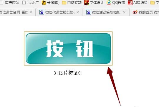 3、在浏览页面点击按钮图片,会有响应,黄色边框就是鼠标按下时的状态。