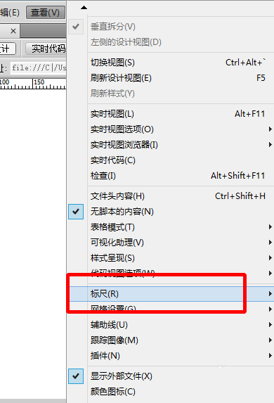 Dreamweaver标尺怎么设置单位?