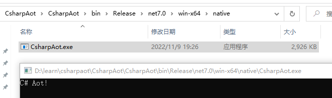 剩下 CsharpAot.exe文件后,启动这个程序: