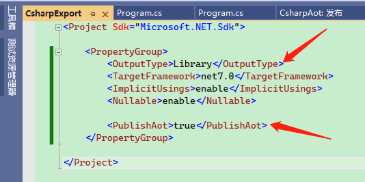 为了能够让项目发布时使用 AOT 模式,需要在项目文件中加上 PublishAottrue/PublishAot选项。