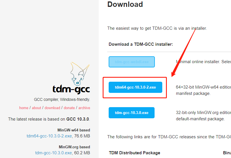 打开 tdm-gcc 官网,通过此工具安装 GCC,官网地址: