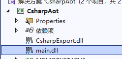 将 main.dll文件复制放到 CsharpAot项目中,设置 始终复制。