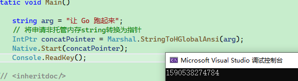 笔者不太了解 Golang 内部的原理,不确定这个数字是不是 .NET string 传递了指针地址,然后 Go 把指针地址当字符串打印出来了。