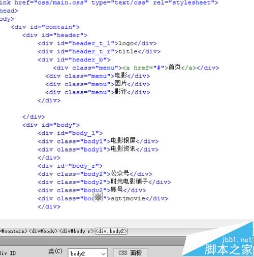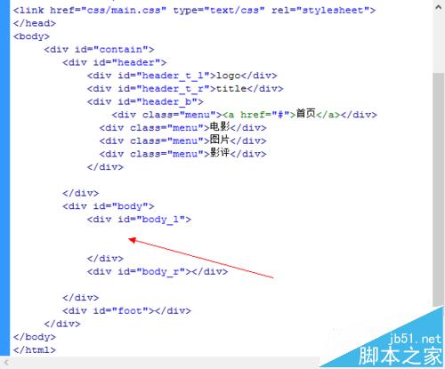 3、然后我们输入文字,将要对div进行定义。定义当然在main文件中进行。