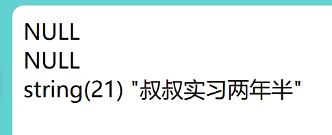 $name= "叔叔实习两年半";function test(){ $page = 34; unset($page); var_dump($name); echo "