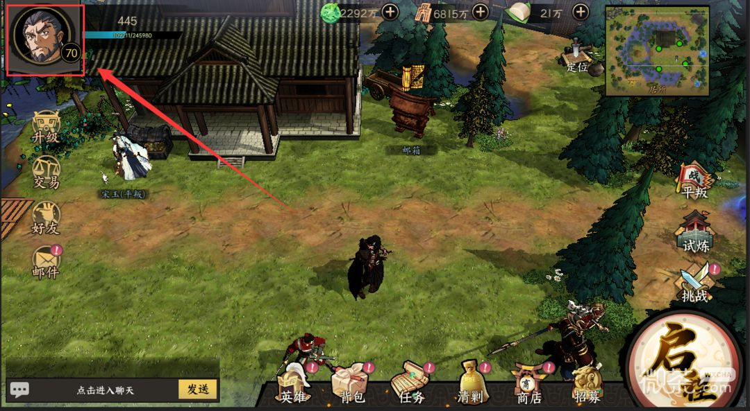 1.完成新手引导后,在主界面点击“头像”打开详情界面。