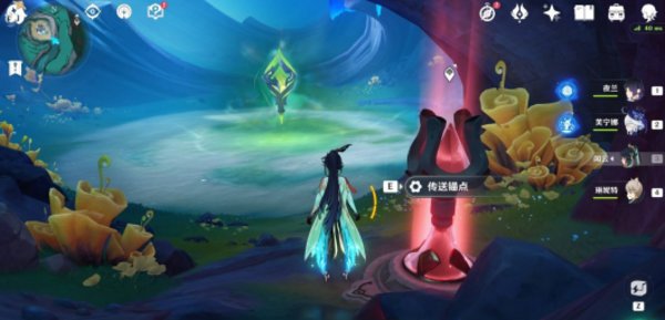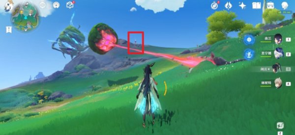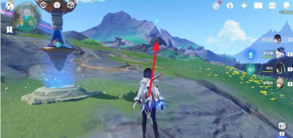 从伦波岛七天神像位置出发,往右上角草地处的传送锚点走。
