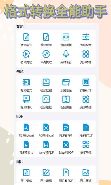 集多功能于一体的格式转换工具,界面简洁直观,新手也能快速掌握操作流程。支持多文件同时转换,可设定输出路径,便于统一管理生成的音频或视频文件。具备良好的设备兼容性,可在手机、平板及电脑端流畅运行。安装包体积小巧,低配置机型也可顺畅使用。所有核心功能均免费开放,无隐藏收费项目。