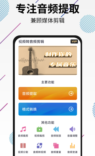 支持主流视频格式快速转为音频文件,转换过程稳定可靠,确保音质清晰无损。专注于音视频创作体验,提供专业的音频编辑功能,包括精确裁剪、多段合并、混音处理等操作,让用户自由发挥创意。无论是提取背景音乐还是制作个性铃声,都能轻松完成。
