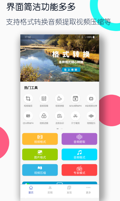 这款应用广受用户欢迎,具备多项实用功能,涵盖格式互转、视频压缩、配音添加以及转为gif动画等特色服务。支持批量处理模式,显著提升操作效率。内置文件管理模块,可实现压缩包解压、加密压缩以及通过WiFi传输文件。同时允许自定义输出参数和画质选项,满足不同场景下的个性化设置需求。
