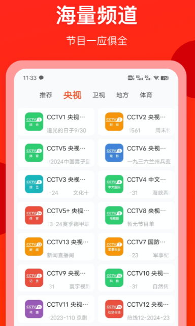 专为央视内容打造的应用程序,提供全天候的频道直播服务。用户可自由切换多个CCTV频道,实时收看《新闻联播》《焦点访谈》等权威资讯类节目,也可观看文化、科教、少儿等多样化栏目,满足不同年龄层的信息获取需求,相当于将传统电视搬到了掌上设备中。