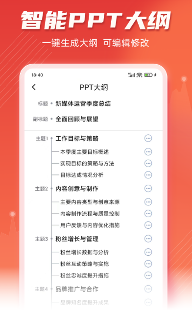 这是一款功能全面且适配多种移动设备的应用程序,支持主流格式如PPT文件的在线识别与处理。内置智能生成引擎,可依据内容自动推荐布局,实现随时随地高效创作。涵盖总结报告、学术答辩等多种使用情境下的模板资源,覆盖教育、商务等多个领域,并保持高频更新。所有素材均可自由调整,还提供PDF与PPT互转功能,满足跨平台文档处理需求。