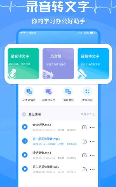 该平台以操作简便和识别准确著称,集成了录音机与语音识别双重功能,适用于访谈记录、教学听课、会议整理等多种使用情境。用户只需开启录音功能,系统便可同步将语音流转换为文字内容,过程中支持实时翻译,帮助理解外语发言内容。此外,支持多国语言切换,是高效整理资料的理想选择。