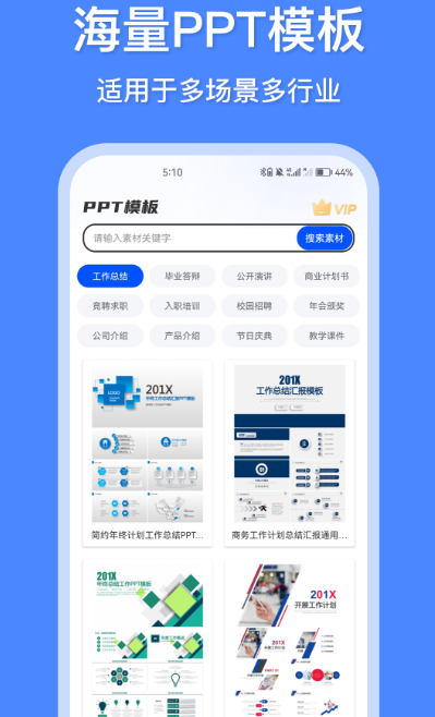 这款应用提供大量可在线预览并免费下载的PPT模板资源,涵盖多种风格与用途,如教学课件、项目汇报、产品发布等。界面简洁清晰,支持关键词快速检索,满足不同用户的个性化需求。所有模板均由专业设计师精心打造,兼具美观性与实用性,同时平台持续更新内容,确保资源紧跟潮流趋势,助力用户轻松提升工作效率。