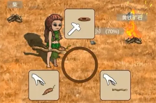 ②将枯枝放在地上后,手上需要拿着燧石刀刃点击地上的枯枝进行交互。即使制作失败也可以继续点击直到制作完成。