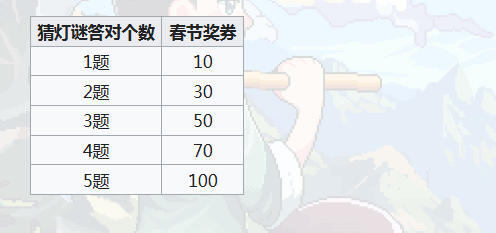 猜测的地点主要是两个,一个是俞关山,另外一个就是柴老夫人,如果邀请好友一起去猜测,猜测完成之后就可以增加50点的好感度,这简直就是刷交情的大好选择。当然奖券的奖励也是比较实在的,答得越多那就意味着赚的也就越多。答对一题就可以拿到10个券,答对两题就有30个券,要是5个题目全部答对,那就可以拿到100个券。而这一些券就可以进入到春节商店去兑换所需要的奖励,要知道赤血珊瑚还有内功经验丹也只不过是一组40卷。